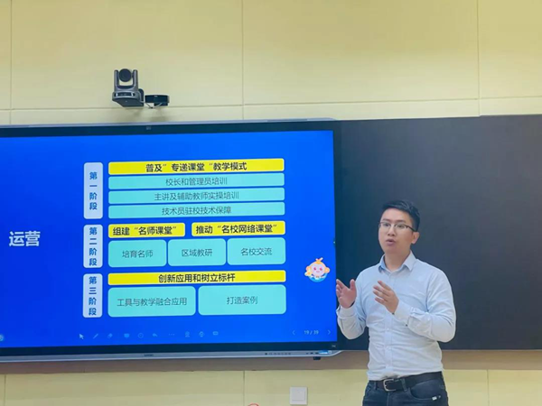 其中,第一階段是普及“專遞課堂”的概念,讓管理層重視,讓老師們會用。第二個階段是讓名師組建團隊,讓名校輸出教學教研資源。第三個階段是打造樣板,樹立標桿。