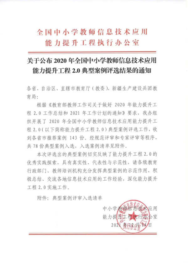 2020年全國中小學教師信息技術(shù)應(yīng)用能力提升工程2.0典型案例評選工作,于2021年12月圓滿落下帷幕。這是由全國中小學教師信息技術(shù)應(yīng)用能力提升工程執(zhí)行辦公室主辦的一場全國性評選,經(jīng)過層層選拔,78份典型案例得以最終入選。福建省浦城縣第三中學,憑借團隊力量,依托希沃軟硬件支撐,在143份報送案例中脫穎而出,成為全國各省市教育教學相關(guān)人員學習的優(yōu)質(zhì)范本。