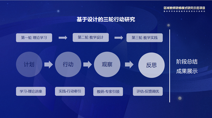 示范項目圍繞“教育教學(xué)前沿”“學(xué)科教學(xué)設(shè)計及實施”及“信息技術(shù)與教學(xué)融合”三大方向提升教師專業(yè)能力。2024年10月至2025年5月,分階段實施三大目標(biāo):新課標(biāo)、新理念的學(xué)習(xí)與應(yīng)用,新技術(shù)、新模式的學(xué)習(xí)與應(yīng)用,以及骨干隊伍的培育與優(yōu)秀成果的生成。