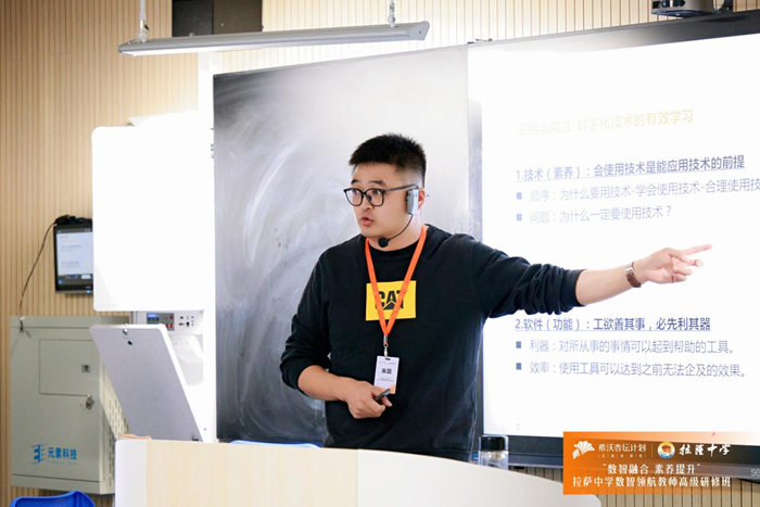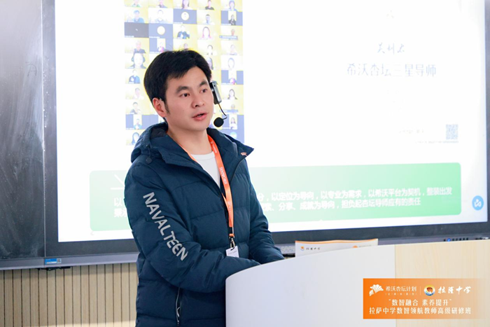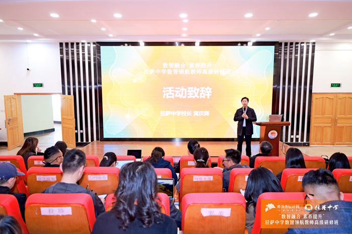活動開場,拉薩中學的校長黃慶輝致辭,闡述校級“數智領航教師”的培養計劃目的與意義,并對老師們也提出了期待,希望老師們認真學習,未來更好地引領學校教師隊伍的成長。