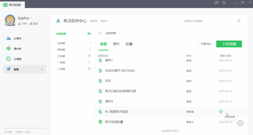 老師可以通過資源目錄找到對應資源,點擊課件或膠囊名稱,即可在線預覽