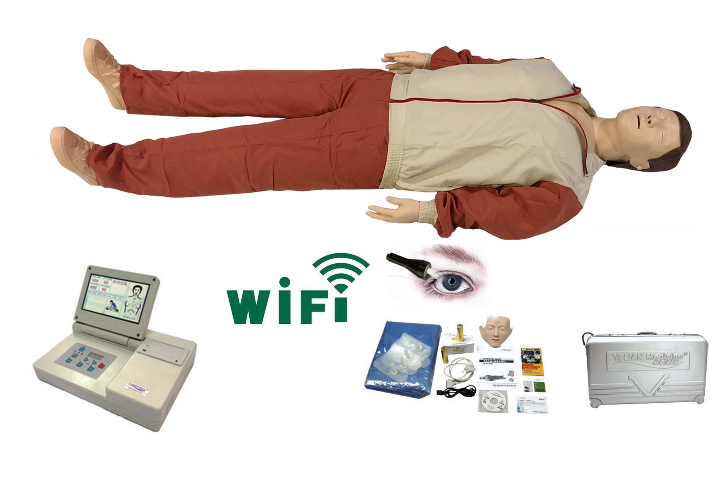 產品詳細介紹功能特點: 1.采用彩色液晶顯示:模擬心電圖顯示、觸摸屏設計,用戶可觸摸屏幕按鈕進行方式選擇、參數設置、訓練考核。 2.模擬人解剖特征明顯,手感真實,膚色統一,形態逼真,外形美觀。 3.模擬生命體征: 1) 初始狀態時,模擬人瞳孔散大,頸動脈無搏動。 2) 按壓過程中,模擬人頸動脈被動搏動,搏動頻率與按壓頻率一致。 3) 搶救成功后,模擬人瞳孔恢復正常,頸動脈自主搏動。 4.瞳孔縮放和頸動脈搏動由開關可開啟和關閉。 5.瞳孔對光反射:光線照射一眼時,另一眼瞳孔立即縮小,移開光線瞳孔擴大。檢查間接對光反射時,應以一手擋住光線以免對檢查眼受照射而形成直接對光反射。 6. 可進行人工呼吸和心外按壓。可進行標準氣道開放,氣道指示燈變亮。 7. 三種操作方式:可進行CPR訓練、模式考核和實戰考核。 1) 方式一: CPR訓練,可進行按壓和吹氣訓練。 2) 方式二:模式考核,在設定的時間內,根據2015國際心肺復蘇標準,正確按壓和吹氣數30: 2 的比例,完成5個循環操作。 3) 方式三:實戰考核,老師可自行設定操作時間范圍、操作標準、循環次數、操作頻率、按壓和吹氣的比例。