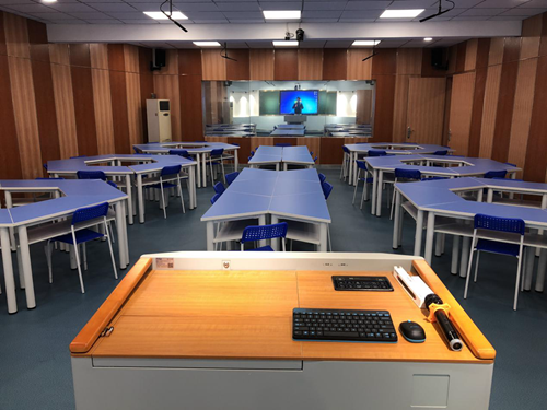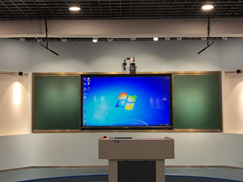 精品課堂錄播教室設置有教師特寫攝像機一臺、教師全景攝像機一臺、學生特寫攝像機一臺、學生全景攝像機一臺、板書攝像機一臺;講臺8英寸觸控導播臺一臺,觀摩室導播鍵盤一臺、教室音響系統一套、交互式教學一體機一臺等設備。為學校大大 促進教學信息化建設的進程,提升教育信息化水平 。