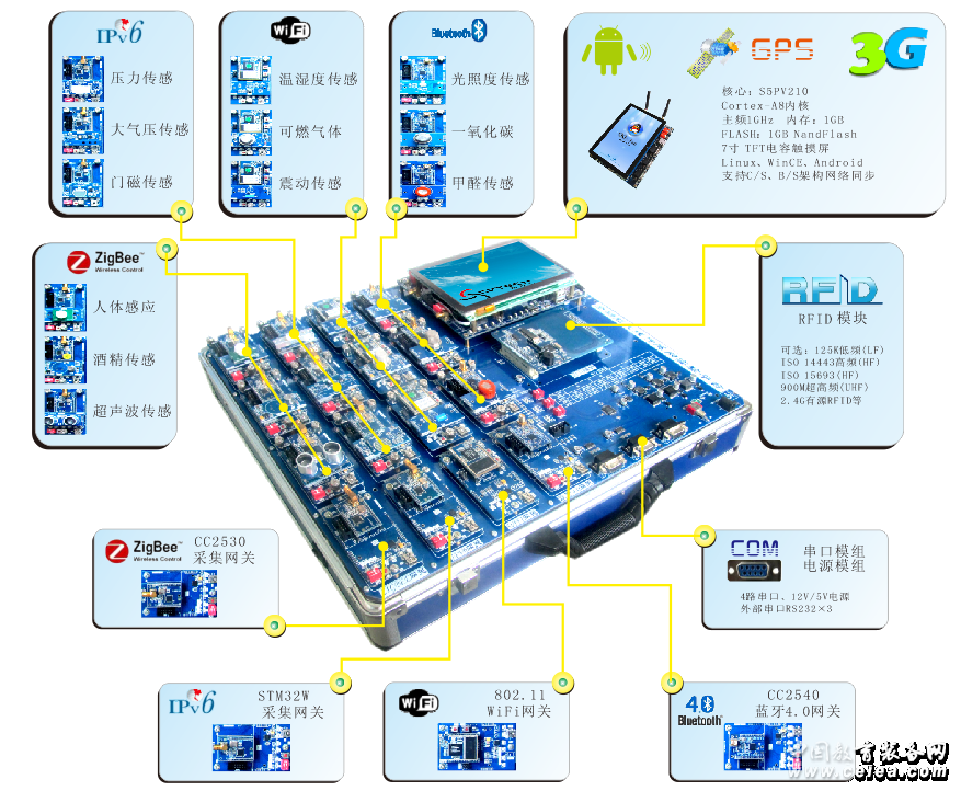 產(chǎn)品詳細(xì)介紹Cortex-A8內(nèi)核高端的多功能物聯(lián)網(wǎng)教學(xué)產(chǎn)品,能夠?qū)W習(xí)主流無(wú)線(xiàn)傳感協(xié)議(IPV6、Zigbee、WIFI、Bluetooth)無(wú)線(xiàn)射頻識(shí)別(低、高、超高頻RFID)以及物聯(lián)網(wǎng)周邊3G、GPRS、GPS教學(xué)解決方案。 |