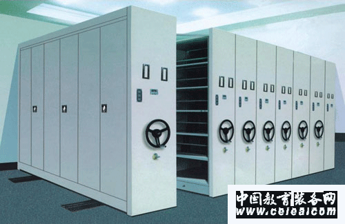 根據庫房特征進行合理布局,高度利用空間,采用多節多聯安放在固定的軌道上形成一整體,用手搖或電動方式移動各列存取。