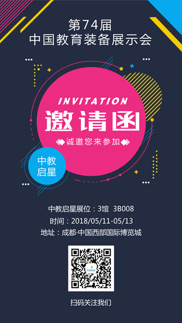 5月11號到13號,中教啟星在3館3B008號展臺恭候廣大新老客戶及業界同仁蒞臨觀展、共襄盛會!