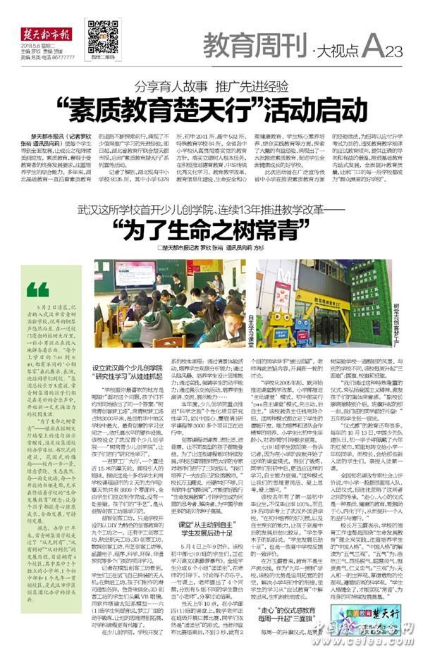 本文首發于5月8日楚天都市報A23版教育周刊,是湖北省教育廳和楚天都市報聯合推出的“素質教育楚天行”系列宣傳報道之一。