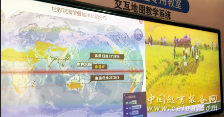交互地圖教學系統是專為現代信息化地理教室而設計的數字化現代教育裝備產品。本系統為凸顯地圖在地理課堂教學中突出地位和功能而潛心設計制作,它將數字專題地圖與教學課件有機結合,通過超寬屏投影技術、集成觸控、紅外技術和多屏聯動技術等,突破了傳統教室在區域地理呈現方式上的局限性和不足。