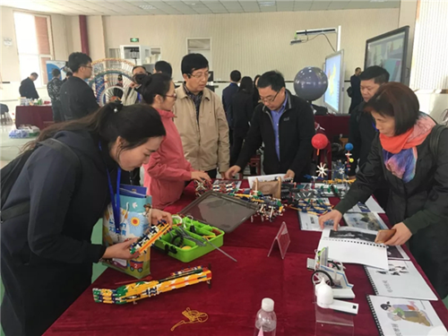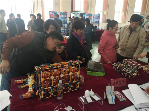 中教啟星展臺設在石家莊市青少年社會綜合實踐學校一樓的多功能廳,位于會場主出入口,占地面積達200余平,分為創客區、科技區、傳統文化區和虛擬現實展區,是參展企業中規模最大、內容最全、展品最多的。