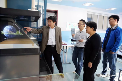 驗收由校方、捐贈方代表、供貨商三方出席,學校領導李金波校長、于曉暉副校長,李崇賢老師,以及地理組部分教師聽取了中教啟星地理教室的介紹,觀看了設備演示。在隨后的交流中,李金波校長對李崇厚、蕭虹教授的慷慨資助表示感謝。他要求地理組教師要充分結合現代化技術,提升學生素養;信息中心要做好管理維護工作;希望供貨商在后續服務中多提供支持。李崇賢老師代表捐贈方表示:感謝一中領導和相關老師在地理教室的建設中的支持,感謝施工方的真誠合作,看到數字化地理教室的建成非常高興,希望地理教室在煙臺一中的地理教學中最大化發揮作用。最后地理組老師們表示,一定愛護好、管理好、使用好地理教室,不辜負校長和李老師的期望。