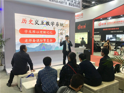 本次展會,中教啟星展臺特意開辟出一塊“方案宣講區”,并派出多位金牌講師和方案工程師全天候不間斷宣講,深度解讀地理、歷史、創客、VR和新建校等五大核心解決方案。為了提升宣講的轉化率和趣味性,宣講間隙還設置有獎問答等游戲環節,吸引了眾多觀眾駐足聆聽。