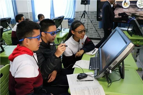課堂上,學生三人一組,在張老師的引導下,通過中教啟星高中歷史VR教學系統(tǒng)開展小組探究,系統(tǒng)里逼真的歷史場景仿佛就在眼前,通過輕巧的3D追蹤眼鏡和觸筆就能輕松實現(xiàn)人機互動,小組成員之間交流討論也不受任何干擾,VR技術的應用讓課堂教學效率得到了質(zhì)的提高。