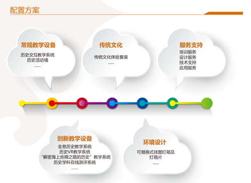 依據(jù)教學(xué)功能,歷史教室設(shè)備配置主要?jiǎng)澐譃椋航虒W(xué)專用設(shè)備與資源、創(chuàng)新教學(xué)設(shè)備與課程、傳統(tǒng)文化體驗(yàn)套裝、模型教具及教室文化五大核心模塊,其中核心設(shè)備如下: