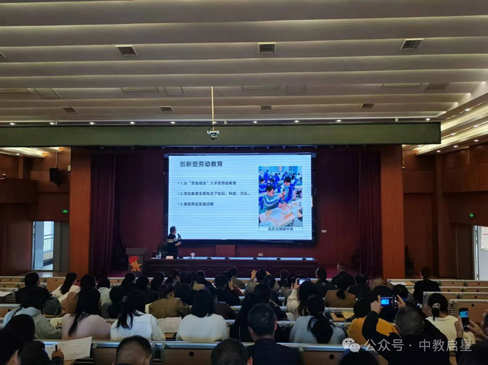 本次培訓(xùn)采用專(zhuān)題講座與實(shí)踐操作相結(jié)合的形式。10月29日上午進(jìn)行以《基于多學(xué)科融合的勞動(dòng)教育方案及器材使用》為主題的專(zhuān)題講座,中教啟星勞動(dòng)教育項(xiàng)目部負(fù)責(zé)人秦巖老師親自授課。以勞動(dòng)教育課程提出背景及相關(guān)政策為切入,圍繞以勞動(dòng)教育課程課標(biāo)為指引的勞動(dòng)教育課程建設(shè)、培養(yǎng)具有勞動(dòng)學(xué)科核心素養(yǎng)的新時(shí)代社會(huì)主義接班人,秦巖老師的講座深入淺出闡釋了從“勞動(dòng)觀念”開(kāi)始的勞動(dòng)教育到基于多學(xué)科融合的創(chuàng)新型勞動(dòng)教育,同時(shí)結(jié)合勞動(dòng)教育教室設(shè)施設(shè)備使用理論,為教師們提供了專(zhuān)業(yè)的理論指導(dǎo),幫助教師們更好地掌握相關(guān)勞動(dòng)教育課程理念。