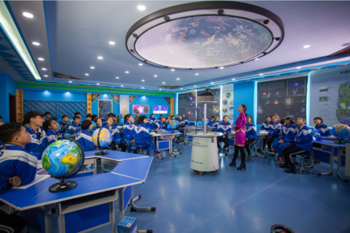 基于數(shù)字化與虛擬現(xiàn)實(shí)技術(shù)的創(chuàng)新型地理專用教室是指以“數(shù)字化”為主導(dǎo),以數(shù)字星球系統(tǒng)為核心,遵循教育部《中學(xué)地理專用教室建設(shè)規(guī)范》,配備常規(guī)教學(xué)類的交互地圖教學(xué)系統(tǒng);天文實(shí)踐類的課程資源包;創(chuàng)新應(yīng)用類的虛擬現(xiàn)實(shí)VR教學(xué)系統(tǒng)、地理AR沙盤、全息教學(xué)系統(tǒng)、3D地理教學(xué)系統(tǒng);實(shí)驗(yàn)活動類的地理交互學(xué)具、地理綜合實(shí)踐套裝;并輔以教學(xué)通用設(shè)備以及環(huán)境創(chuàng)設(shè),能夠把地理課本上的知識更直觀、生動、全方位的精彩呈現(xiàn),讓學(xué)生打開傳統(tǒng)的思維模式,以一種更加生動活潑的方式學(xué)習(xí)地理,有利于教師教學(xué)活動的開展和學(xué)生學(xué)習(xí)效率的提高。