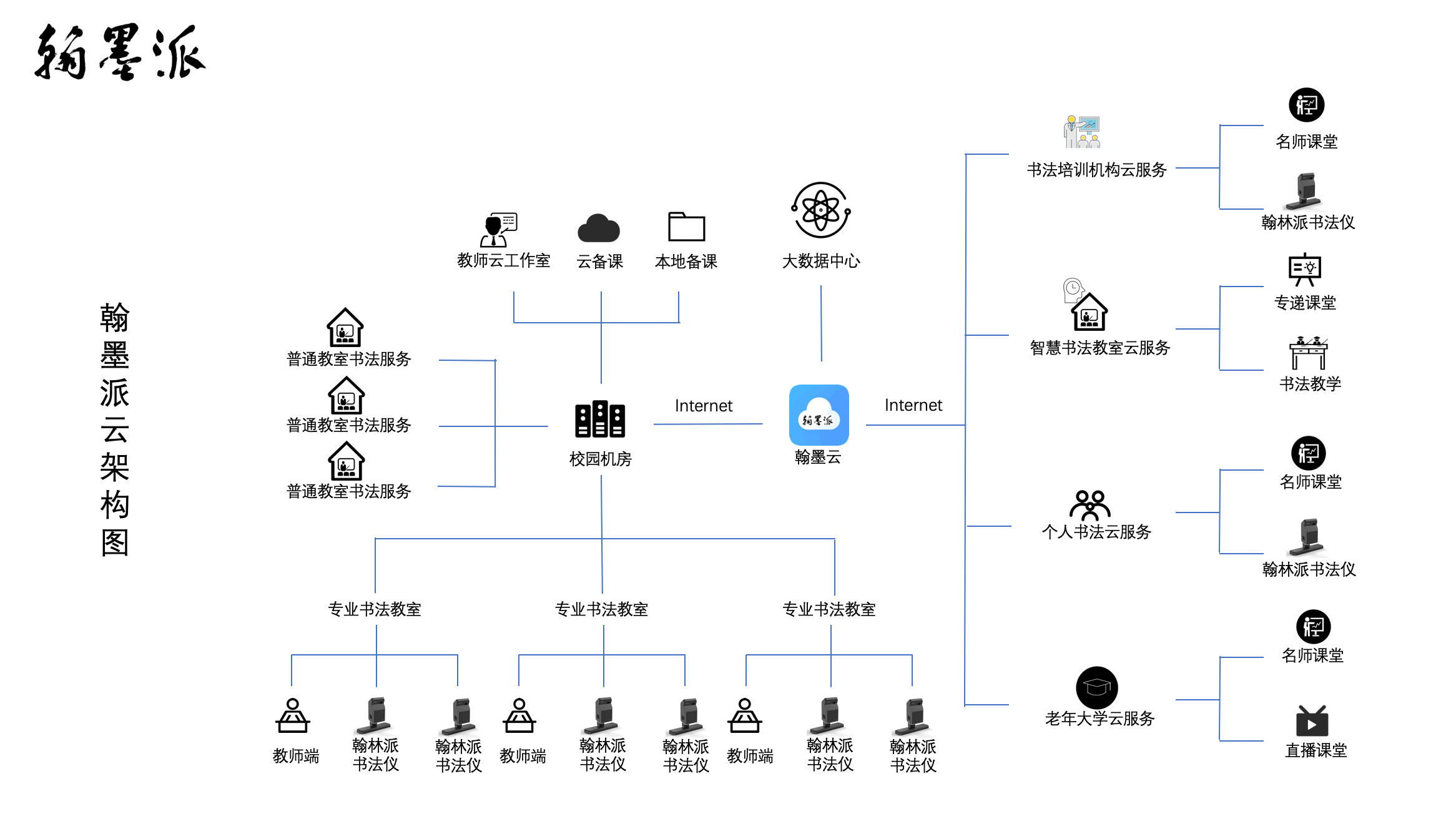 翰墨派基于云技術的書法教學系統(tǒng),支持全校師生在線上課,學生的上課場景可以是在書法實驗室,普通教室,學生宿舍或者家里。每個學生都可以注冊自己的學習賬號,賬號支持在教室登錄,也支持在手機等其他移動設備上登錄,使用云書法教學軟件進行書法學習,習帖、臨摹、創(chuàng)作、完成作業(yè)并與教師互動交流。