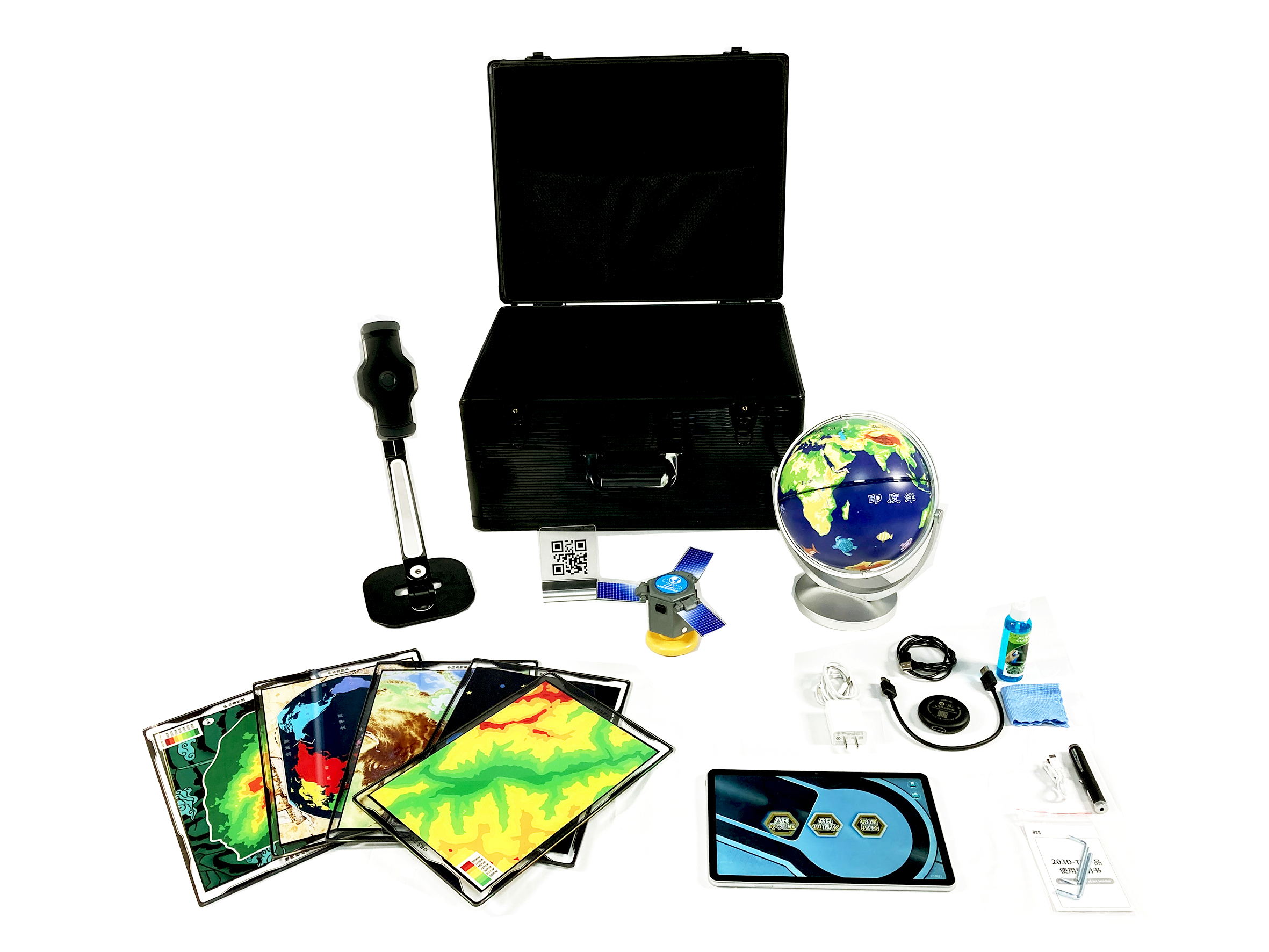 是基于AR技術開發的全新地理教育類產品,實現了手創地球儀與APP軟件完美結合,將AR增強現實、3D動畫等多媒體技術與知識內容進行深度結合。該產品內容根據最新中學地理教材知識結構精心編寫,全面覆蓋新課標知識點,同時將傳統地理教學與AR技術相結合,以圖片、視頻、動畫等手法,提高學生與地理知識的互動操作,為老師和學生創設一種體驗式和沉浸式的學習環境,提升地理課堂教學效果,從而更順利解決地理中的難點和學生的困惑點。