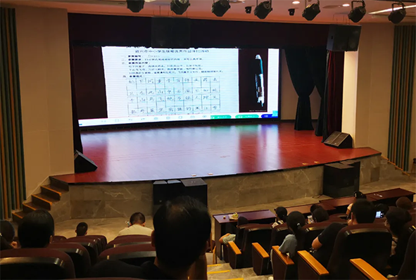 本次比賽由學(xué)生端利用學(xué)生書法儀進行書寫視頻采集,通過羿飛書法展示教學(xué)系統(tǒng)進行比賽會場的實時直播。大家可以在線上觀看比賽全過程,包括孩子們的書寫過程,體現(xiàn)本次比賽的公平公正公開,同時家長們可以在大會議室通過大屏幕觀看選手的實時比賽情況。