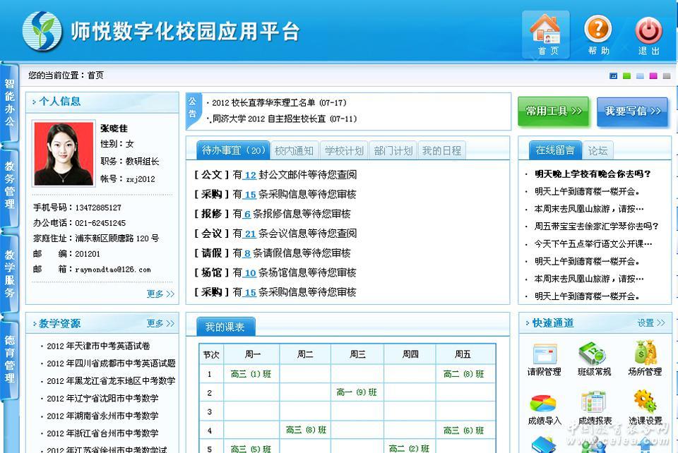 該產品為學校全體領導和教師提供一個無紙化零電話的網絡辦公平臺,包括所有校園特色的辦公功能,每個功能都非常強大,涵蓋了日常辦公的各個方面。讓教師在辦公中體驗瀏覽器帶來的快樂。