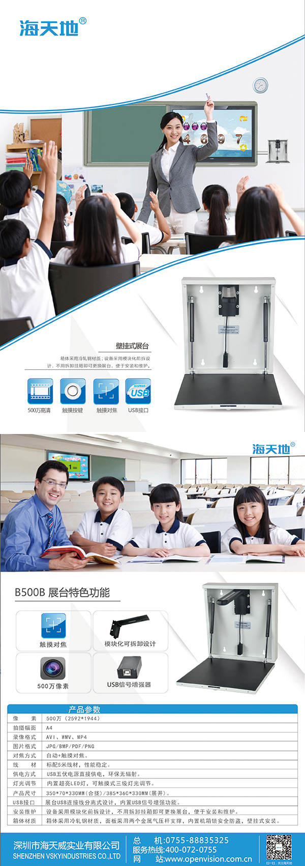 1、  500萬像素拍照,(通過連接觸摸一體機,可以對展示內容或者拍攝的圖片進行各種編輯,進行全屏展示,完美替代黑板,省時省力,讓學生易懂,易記,學習更加方便。