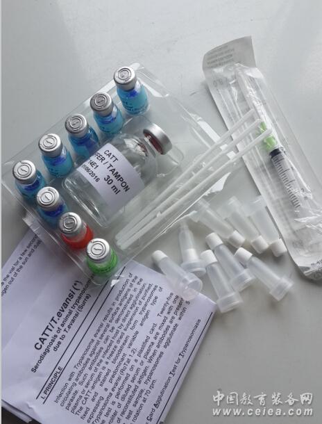 試劑盒含有完成伊氏錐蟲卡片凝集試驗檢測全過程所需全部試劑:抗原、緩沖液、陽性血清和陰性血清; 可對馬屬動物、豬、牛、羊等多種動物的血清進行檢測 Card Agglutination Test for animal Trypanosomiasis caused by T.evansi This field and laboratory test (CATT/T.evansi) is used for the serodiagnosis of animal African trypanosomiasis (T. evansi). It is a direct card agglutination test for detection of trypanosome specific antibodies in blood, serum or plasma of T.evansi in different animal species. It is currently applied for serodiagnosis of T.evansi in various host species (i.e. camels. buffaloes, equidae, dogs,…) Reagent | Freeze dried suspension of purified, fixed and stained trypanosomes of a cloned predominant Variable Antigen Type (VAT RoTat 1.2) of T.evansi. Test sample | Whole blood (for screening), plasma (on heparine or EDTA) or serum. Shelf life - expiry date | When stored under the prescribed storage conditions, all the reagents will retain their activity until the expiry date mentioned on the “Reagent” boxes and on the packing list (1 year). Storage · Freeze dried reagents (antigen, controls) : in the refrigerator(+2°C to +8°C) or in the freezer (-20°C) · CATT buffer: in the refrigerator (+2°C to +8°C) – do not freeze! · During transport, storage and handling: avoid exposure to heat and direct sunlight. · It is recommended to dispatch the reagents from a central storage centre to the field under refrigerated conditions (cold chain). Packaging Test kit containing all reagents and accessory materials + protocol. · CATT/Tev T250: 250 screening tests What else do you need? · Card Test Rotator References · C. Gutierrez, M.C. Juste, J.A. Corbera, E. Magnus, D. Verloo and J.A. Montoya (2000): Camel trypanosomosis in the Canary Islands: assessment of seroprevalence and infection rates using the card agglutination test (CATT/T.evansi) and parasite detection tests. Vet. Parasitol., 90, 155-159. · D. Verloo, E. Magnus and P. Büscher (2001): General expression of RoTat 1.2 variable antigen type in Trypanosoma evansi isolates from different origin. Vet. Parasitol., 97, 183-189. · W.G. Holland, N.G.Thanh, L.N. My, E. Magnus, D. Verloo, P. Büscher, B. Goddeeris and J. Vercruysse (2002): Evaluation of whole fresh blood and dried blood on filter paper disks in serological tests for Trypanosoma evansi in experimentally infected water buffaloes. Acta Tropica, 81, 159-165. |