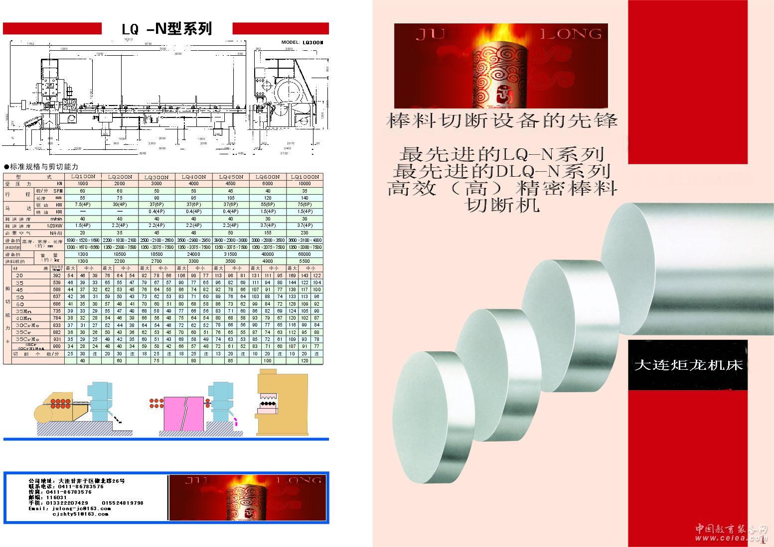 大連炬龍鋸切剪斷機(jī),切斷效率20-100次/分鐘,剪切表面圓度在95%--98%,表面傾斜度在0.5-1.5度以內(nèi),加工噸位從100噸-1400噸. A剪切視屏http://v.youku.com/v_show/id_XNDMwNTk4Njcy.html B剪切視屏http://www.tudou.com/programs/view/ZrFadFJ-vbs/ |