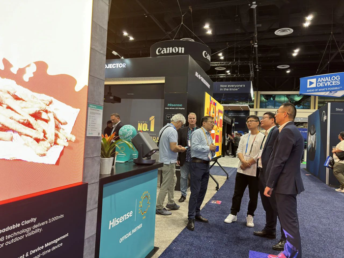 當地時間6月11日至6月13日,全球專業視聽領域盛會InfoComm 2025在美國奧蘭多舉行。海信商用顯示攜場景智慧顯示產品及解決方案亮相,展品涵蓋136英寸COB LED一體機、得來速餐廳場景戶外COB、7*24小時數字標牌DM系列、7*16小時數字標牌DP系列、智慧觸控一體機、商用激光投影及信發集控平臺VisionInfo等,并聯合海信4K三色激光影院產品參展,為零售、教育、辦公、文體娛樂等場景提供數字化轉型新范式。