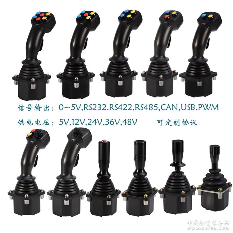 產(chǎn)品詳細介紹一、產(chǎn)品特點: 材 料: 不銹鋼+鋁合金 防 護: 面板以上部分IP66 定 位: 彈簧自動回位 操作角度: 主操縱桿±22.5度,方形界限; 按鈕開關(guān): 1個使能開關(guān),1-6個復(fù)位按鈕,防水按鈕; 傳 感 器: 霍爾傳感器 供 電: DC5V、DC12-36V; 功 耗: 小于32MA(模擬電壓信號輸出,單信號輸出,5V供電) 信號輸出: 模擬電壓、USB、RS422、RS232、CAN2.0B、PWM功率驅(qū)動 操作壽命: 大于500萬次; 溫 度: -40度~+70度 外形尺寸: 80X80X238 按裝尺寸: 61X61 |