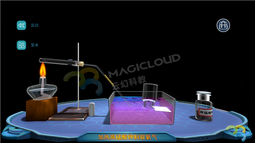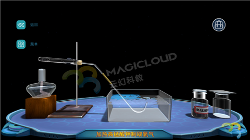 如化學高錳酸鉀制取氧氣實驗中,其注意事項就比較多,放置藥品的試管口是否存放棉花球、試管是否預熱、實驗結束時是否先移導管后移酒精燈等都會導致實驗的失敗。AR技術模擬真實實驗,在不同的情況下會有對應的實驗現(xiàn)象出現(xiàn),如不塞棉花球會導致高錳酸鉀粉末隨氣體進入導管,使水槽中的水變成紫紅色;試管不預熱會導致試管炸裂;實驗結束時先熄滅酒精燈后移導管,伸入水槽一端的導管水倒吸,炸裂試管,等等。教師可以一一展示給學生,讓學生對這些知識點有一個深刻的印象,在其操作的時候就會避免這些現(xiàn)象的出現(xiàn),同時避免了學校實驗器材的損壞及實驗器材開支。