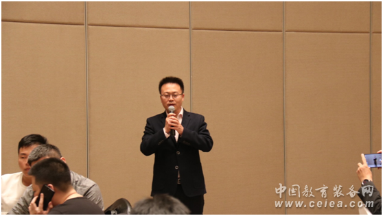 接下來,文香政企事業部會銷總監史移生對文香新品——pad錄播,雙屏錄播進行了深入淺出的講解,在場嘉賓均被這兩款具有超高顏值、超強應用的產品深深吸引。同時,文香合作伙伴,和盛前沿工業機器人教育實訓系統最新產品亮相,引發會場熱議。