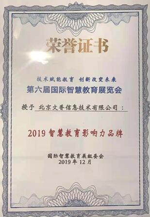 本屆大會上舉行了頒獎儀式,文香董事長朱玉榮獲得“2019智慧教育影響力人物”的殊榮,文香榮獲“2019智慧教育影響力品牌”獎項,感謝各方對文香的信任與支持。