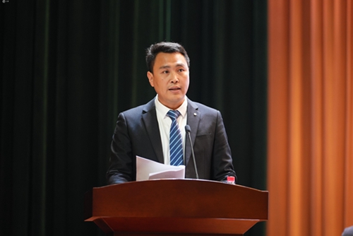 高級副總裁左雪代表決策委員會發言。