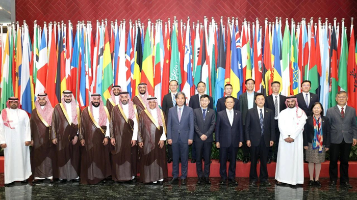 優素福大臣、郁云峰主任、趙磊副司長在交流活動上致辭。此次訪問簽署了沙特中學中文教學資源合作協議,標志著兩國教育部門的合作邁入新的臺階。