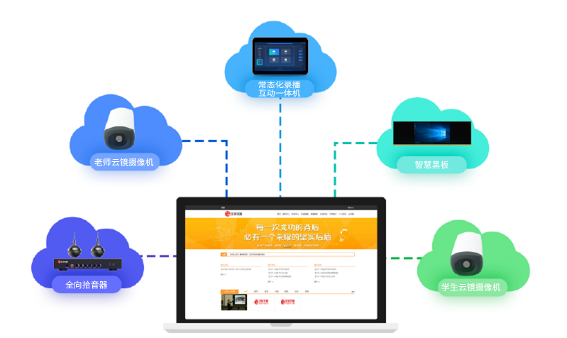 本方案由常態(tài)化錄播互動(dòng)一體機(jī)、電子云鏡攝像機(jī)、智慧黑板、全向拾音器、資源管理平臺(tái)等產(chǎn)品組成。