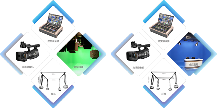 本方案由文香一體化虛實(shí)演播主機(jī)、音視頻采集設(shè)備、虛擬藍(lán)箱\綠箱、燈光系統(tǒng)等產(chǎn)品組成。