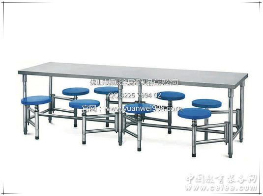 組成及材質: 臺面 不銹鋼臺面 椅架 不銹鋼椅架 凳面 塑膠凳面 產品特點: (1).超強承重,牢固耐用:扛沖擊力好,壽命長,防火不怕熱,硬度強,好清洗,永不變色,承重力大于500kg. (2).椅子可折收到桌面下,方便不占地方。 (3).椅子凳面多色可選。