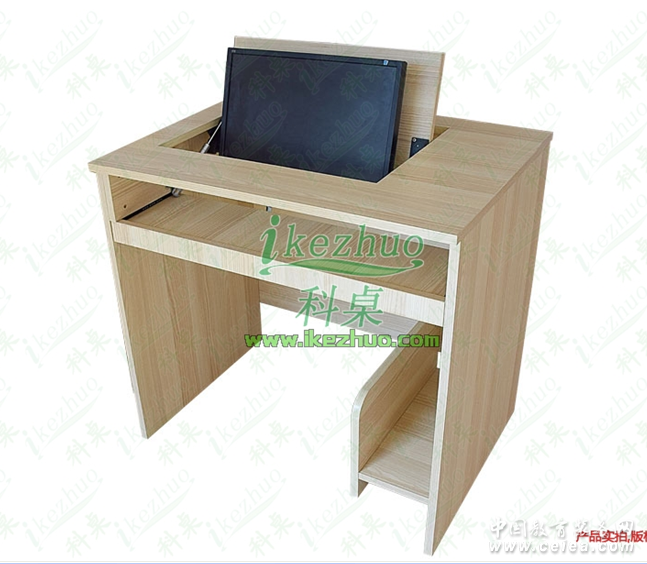 單人翻轉(zhuǎn)電腦桌K08 學(xué)校機(jī)房電腦桌 一、 規(guī)格/參數(shù): 1、外觀尺寸: (1)L800*W600*H760mm(單人) 2、內(nèi) 孔:480*380mm; 3、開 關(guān):自動(dòng)鎖、鑰匙鎖; 4、顏 色:淺灰,乳白,進(jìn)口暖白(其他顏色可定做); 5、材 料:優(yōu)質(zhì)高密度板、中纖板、三聚氰胺板(麻面); 6、顯示屏:17寸、19寸。(其他尺寸可定做); 二、產(chǎn)品特點(diǎn) 1、使用方便,操作簡(jiǎn)單,手動(dòng)控制,翻轉(zhuǎn)自如; 2、防塵,防盜,桌面平整美觀; 3、普通教室與計(jì)算機(jī)教室模式相互切換快速; 4、不阻礙老師與學(xué)生之間目光交流; 5、與電動(dòng)升降式翻轉(zhuǎn)式相比的價(jià)格更低,更環(huán)保; 6、本產(chǎn)品采用優(yōu)質(zhì)高密度板、優(yōu)質(zhì)氣動(dòng)推桿,可使產(chǎn)品更經(jīng)久耐用;