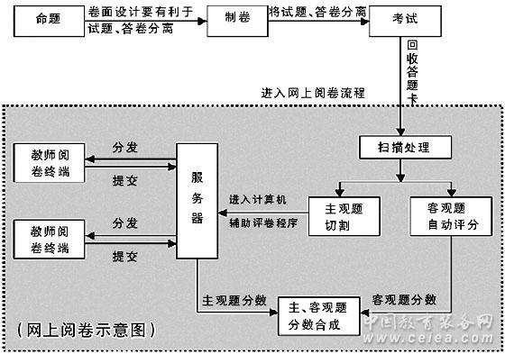 產品詳細介紹網上閱卷又稱網絡閱卷、計算機閱卷或無紙化閱卷。它是基于計算機網絡環境,運用圖片掃描、模式識別、圖像處理等技術對考試答題卡進行電子化處理的過程。此閱卷方式將客觀題與主觀題都在一張答題卡上作答,通過高速文檔掃描儀掃描存儲到計算機內,得到清晰準確的圖像文件后,客觀題由計算機自動閱卷,主觀題無需再翻卷批閱,而是由老師通過計算機進行閱卷,閱卷完畢后由計算機自動匯總分數,并可隨機生成幾十種成績分析統計報表。網上閱卷方式公平公正、方便快捷,大大提高工作效率,降低教師的工作強度,對減少和有效控制評卷誤差、監控評卷質量起到了積極作用,使考試管理工作實現了真正意義上的全面信息化、自動化、網絡化。