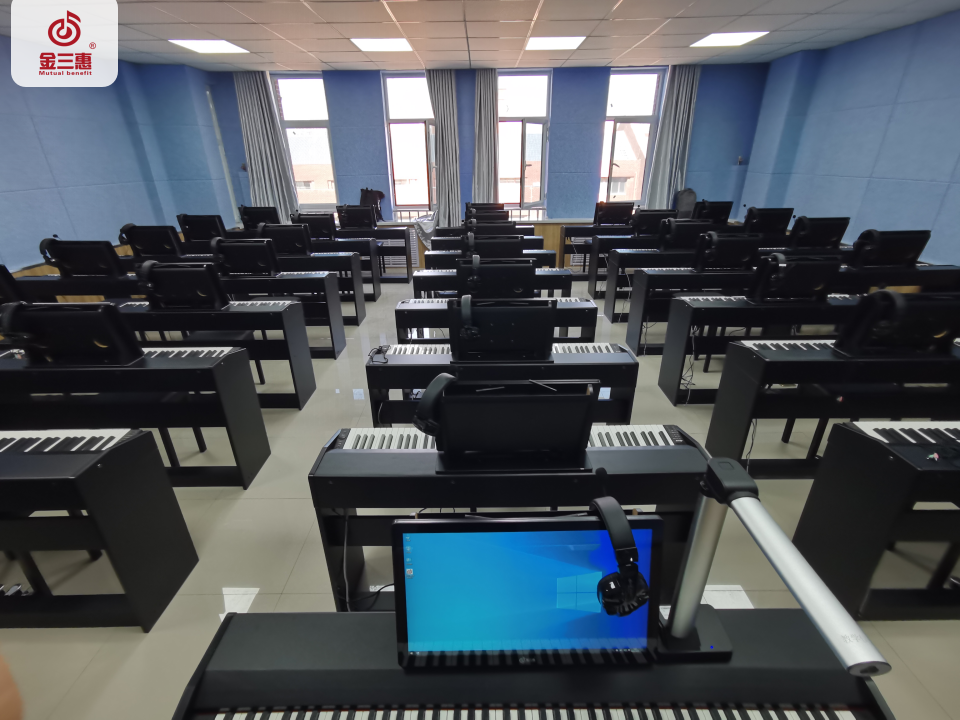 2023年9月,金三惠數字音樂教室為新疆哈密職業技術學院提供、安裝、培訓的40+1智慧創客音樂教室正式開始使用!配備了金三惠教學系統、電鋼琴、數字音樂教學儀等教學教具。