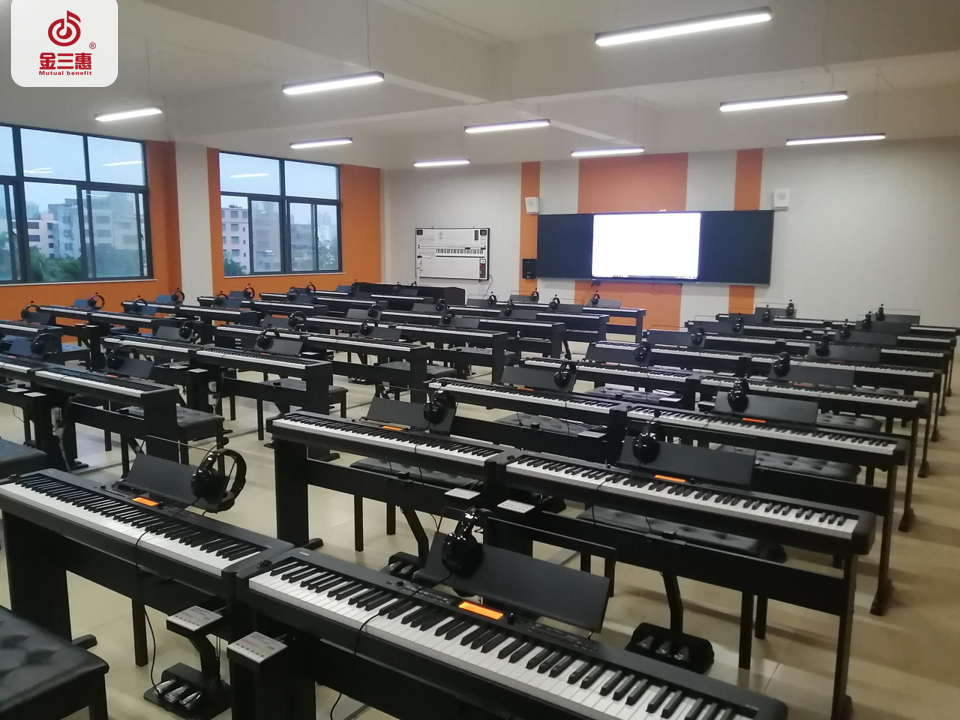 2023年10月,金三惠數字音樂教室走進海南省�?谑袊d中學,為學生提供了50+1的電鋼琴教室,配備了金三惠電鋼琴教學系統、電鋼琴、數字音樂教學儀等教學教具等。電鋼琴室-金三惠 (jinsanhui.com)