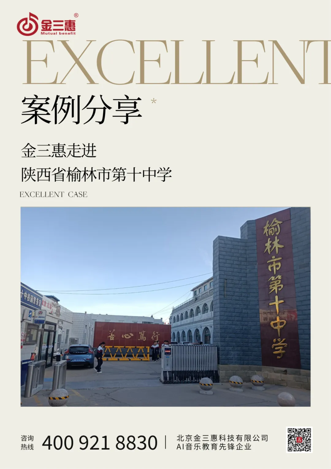 2025年4月,金三惠音樂教室走進陜西省榆林市第十中學,為學校提供了6+1的智慧音樂素養教室,配備了金三惠數字音樂教學系統、電鋼琴、數字音樂教學儀等。