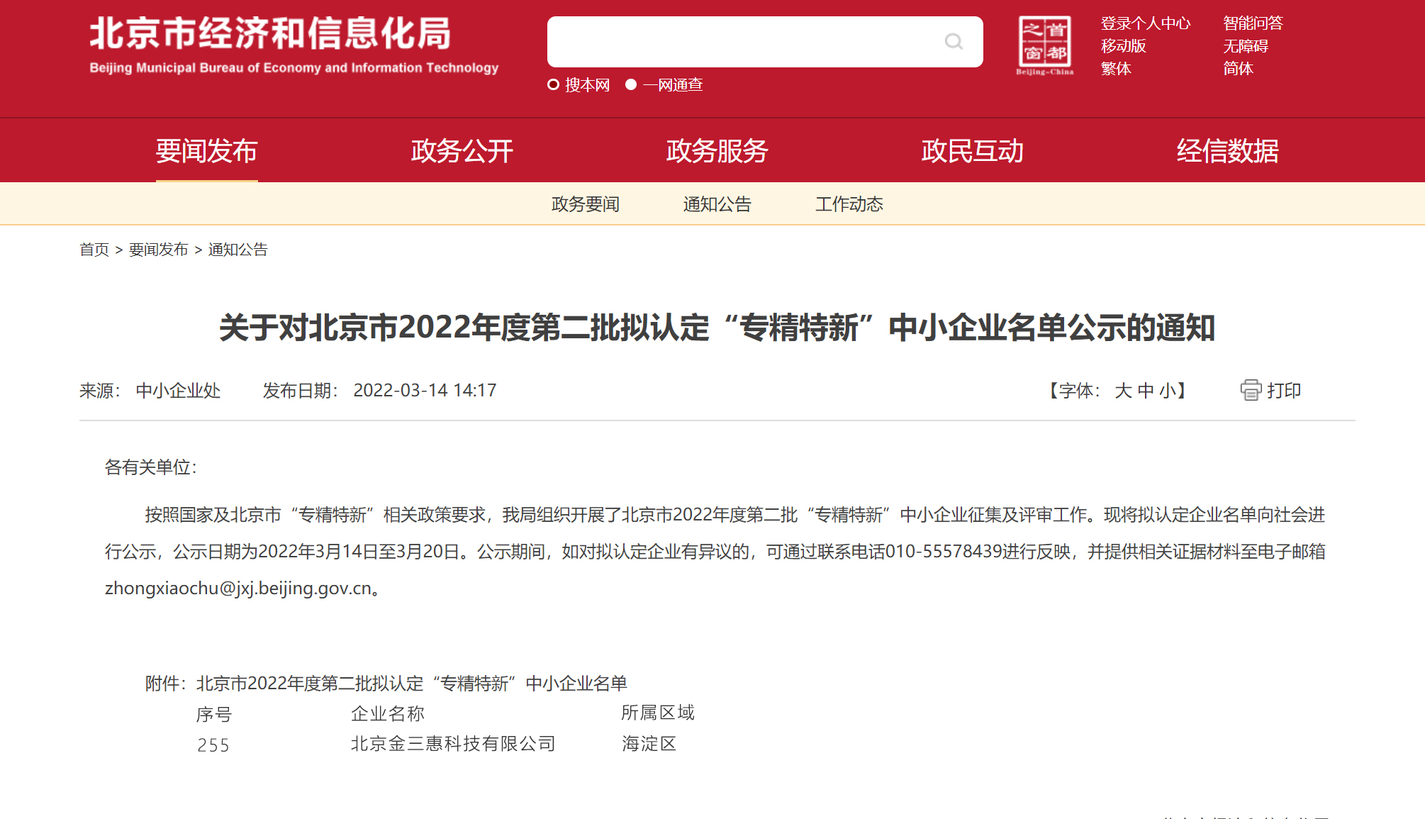 3月14日北京市公布了2022年度第二批擬認(rèn)定“專精特新”中小企業(yè)名單。致力于音樂教育創(chuàng)新、專注以技術(shù)服務(wù)音樂教育的北京金三惠技術(shù)有限公司成功入選名單。