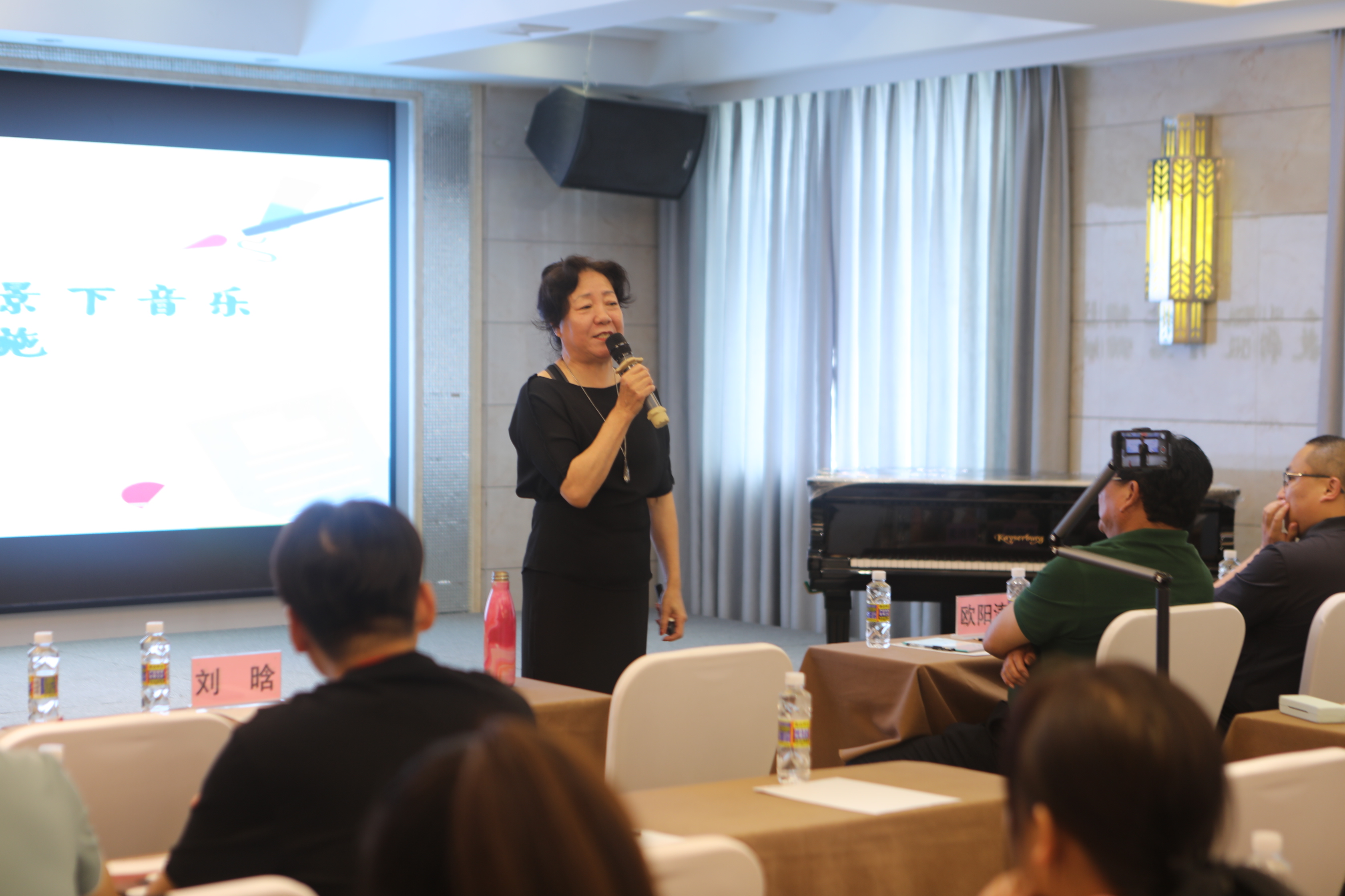 海南省中小學(xué)音樂教研員歐陽濤,首都師范大學(xué)音樂學(xué)院教授、博導(dǎo)、基礎(chǔ)音樂教育課程改革專家鄭莉,北京金三惠總經(jīng)理李現(xiàn)峰等領(lǐng)導(dǎo)和專家出席,瓊海市教育研究培訓(xùn)中心胡詩尹主持培訓(xùn)會(huì)。