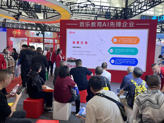 為了讓觀眾近距離感受AI為音樂教育帶來的深刻變革,金三惠的教研團隊在展位上進行了精彩的現場宣講,詳細闡述了公司在AI音樂教育領域的創新成果與實際應用,以AI+音樂為核心,創新性地滿足了備課、教學、演奏、演唱、創作、練習、鑒賞、測評、管理等多元化的教學需求,全面賦能音樂課堂。