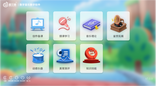 包含創作備課、授課學習、音樂理論、鑒賞拓展、動感樂器、美育測評(可以配置)和知識拓展七大功能模塊。