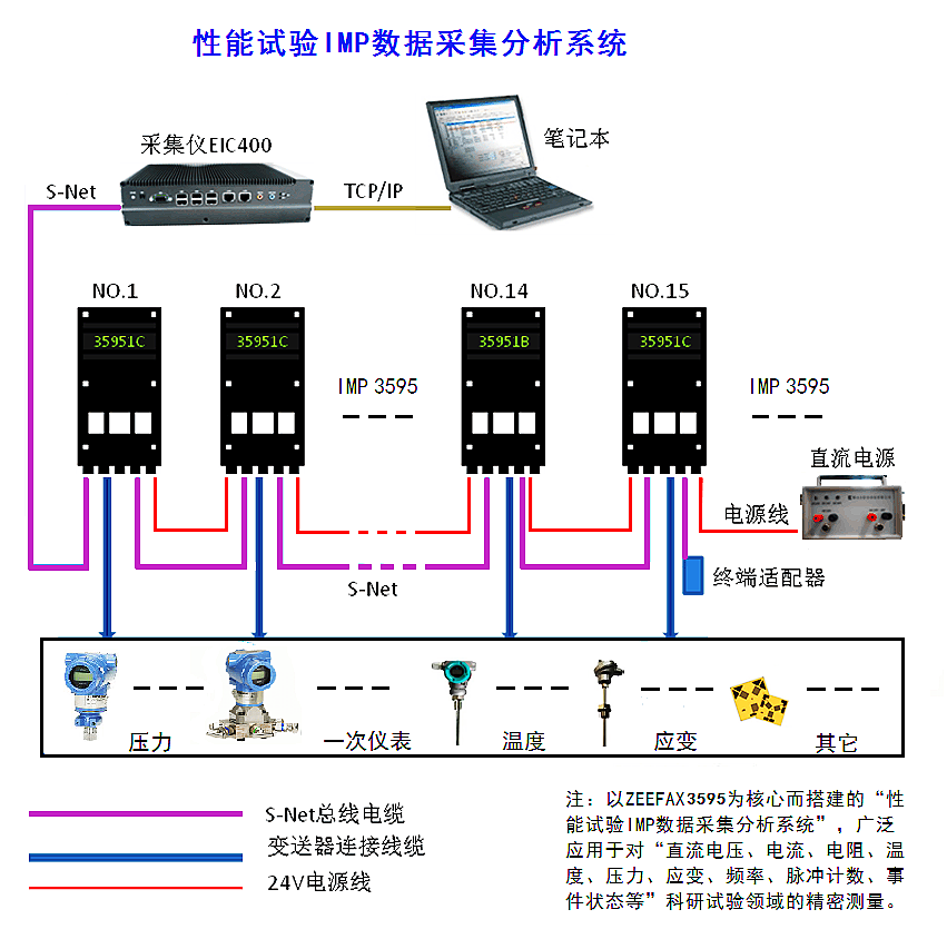 IMP3595數據采集系統是由3595數據采集器、數據采集儀、筆記本電腦和變送器、傳感器等現場一次儀表組成。 系統具備以下特點: 分布式測量 數據采集測量設備可設置在現場測點附近,降低了外部環境電磁干擾的影響; S-net網絡模式,現場接線工作十分方便,并減少了測量導線; 采用模塊化設計,組網簡單,擴展方便,測點靈活。 采集精度高 3595采集板采用了16位模數轉換器,具有較高的測量精度。以直流電壓測量為例,其測量范圍可以從1μV到120V,精度可達0.01%×讀數±0.01%×滿量程。 抗干擾性能 采用雙積分A/D轉換采樣技術,具有硬件結構上的抗干擾能力; 獨特的雙恒流源技術,極大地消除平衡和靈敏度控制帶來的干擾; 共模抑制比大于140db、串模抑制比大于60db; 采集通道之間有承受過壓500V的能力、過載保護電壓(連續)為50V。 獨特的溫度測量 3595采集板在進行溫度測量時有其獨特的優點,可以直接接入熱電偶或熱電阻信號, 冷端溫度補償,使得溫度測量簡單方便,準確可靠,節省大量中間變送或放大環節。 方便的變送器測量 3595采集板在同時進行溫度壓力測量時,可以使用溫度變送器和壓力變送器作為傳感器儀表,這樣統一了現場布線,統一信號線和接口方式,每一通道可以互換,帶來很大的現場方便性,也就不必考慮溫度補償了。 其他方面特點 3595采集板平均無故障時間符合MIL217E標準,為106,000小時; IMP系統工作環境滿足IP55標準所規定的條件; 現場環境溫度限制(最低/最高) -20℃~85℃。 軟件特點 測試軟件基于COM架構的設計思路、組態形式; 三層結構,保證數據安全與穩定、實時數據查看,可與EXCEL無縫連接; 標準化的傳感器校驗信息管理與修正計算; 測量數據工程值與測量值可做實時四則運算; 虛擬測點計算量的設置支持用戶自定義公式。 |