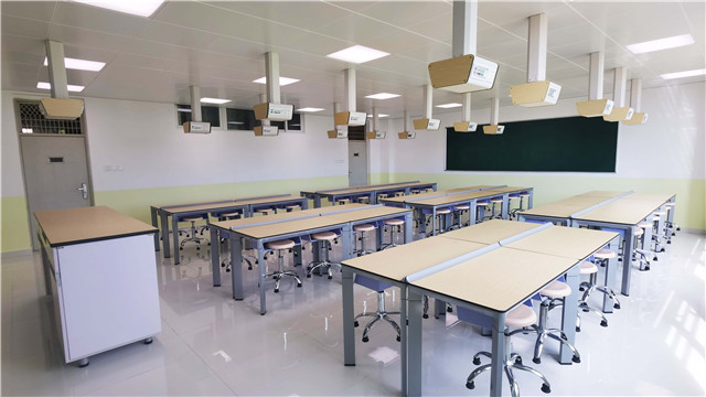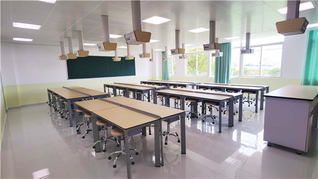 為了給學(xué)生提供優(yōu)越的教學(xué)條件,配備優(yōu)質(zhì)的實(shí)驗(yàn)室,學(xué)校選擇了廣東童園科技有限公司設(shè)計建造了理化生智能實(shí)驗(yàn)室。童園智能實(shí)驗(yàn)室它解決了傳統(tǒng)實(shí)驗(yàn)室空間布置的束縛問題,實(shí)驗(yàn)室教學(xué)設(shè)備能夠靈活布局,通過可移動的實(shí)驗(yàn)室設(shè)備,布置成不同的實(shí)驗(yàn)教學(xué)模式,滿足多種教學(xué)需求。