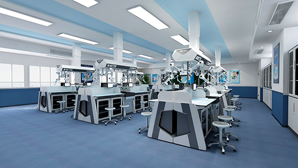 更重要的是,頂裝模塊化設(shè)計(jì)極大地提高了空間利用率,便于空間再組合,以適應(yīng)多種教學(xué)模式。智能實(shí)驗(yàn)室分為五大模塊、分別為智能控制柜、頂裝集成塔吊、擋板升降實(shí)驗(yàn)桌、理化生綜合實(shí)驗(yàn)考試平臺(tái)、污水處理系統(tǒng)。