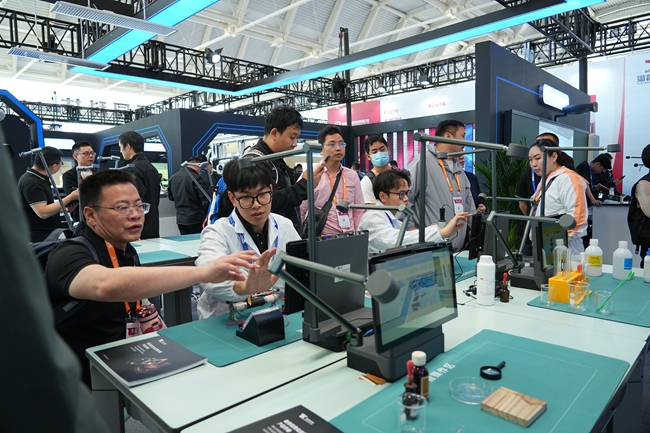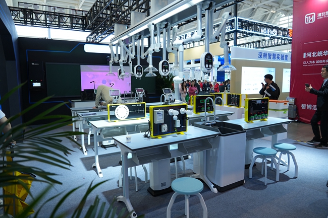 在此次展會上,童園科技重點展示了以理化生智能實驗室為核心的綜合解決方案。實驗室整合先進實驗設備與信息化教學系統,模擬復雜實驗場景,實時采集分析數據,滿足新課標下教學、實訓、考試等多場景需求,提升學生實驗操作與理解能力。與之配套的中考實驗操作考評系統,借助智能設備記錄學生操作過程,通過 AI 智能評分,確保考評公平、科學、高效,已在廣東、湖南常德、甘肅酒泉、河北滄州、福建泉州等地廣泛應用,連續四年助力中考。