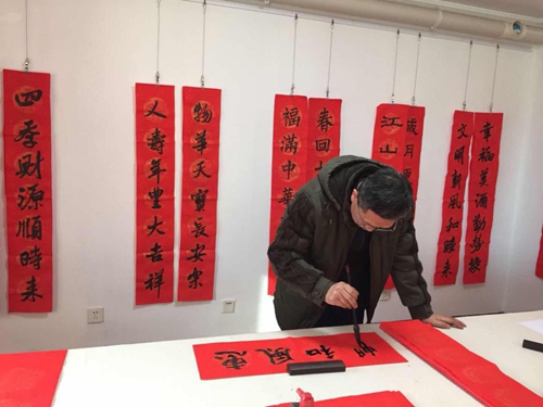 1月28日,在華文眾合書畫教育研究院智云研修院舉行:“華文眾合2018學(xué)寫春聯(lián)請(qǐng)名家”——與中國書法家協(xié)會(huì)理事高軍法、書法名家王纘、各界名人以及書法愛好者現(xiàn)場(chǎng)書寫迎新春聯(lián)活動(dòng)。活動(dòng)現(xiàn)場(chǎng)融合了學(xué)春聯(lián)、寫春聯(lián)、送春聯(lián)于一體,是一場(chǎng)與書法名家同臺(tái)書寫的形式舉辦的室內(nèi)活動(dòng)。